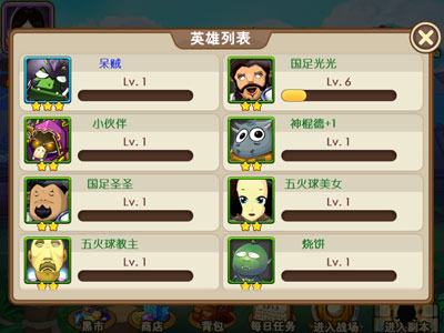 打击主界面点击英雄,弹出“英雄列表”,可以上阵列表内的英雄