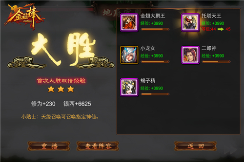 游戏中首次三星通关卡会获得双倍经验的奖励,主角等级越高,打关卡获得的经验也越高。为了最大化利用双倍的经验值,个人推荐每天先将精力刷完(渡劫和封神榜战斗),尽量多获得一些经验值之后再去旅途关卡战斗。