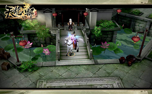 淡然也可以坐看小桥流水庭前落花的燕子坞中一袭青衣撑篙渡船的女子身影与波光粼粼的湖水共长天一色,在少室山下仰望青山劲松,挥斥苍穹的霸气和千年古刹少林寺的相得益彰。《天龙八部3D》游戏中也有着对应的细致场景把原著中的环境细节全部描绘出来。