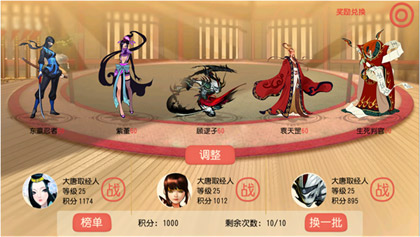 天梯对战是单人PK,带护法的,在随机到的三个玩家中选择一个PK。