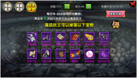 每次刷完精英关卡都会触发妖王来袭,触发来的妖王可以让全服人来打,这个是标记名字ID的,比如是你触发的,那么这个妖王就叫你的妖王,但是这个妖王可以让所有人来打,而且一个人打的时候不允许其他玩家打,不管打不打的死都会给奖励,打死会给更好的奖励,可以,高阶武器碎片或者高阶武器!并且按照上面规定的数量,打死自己的妖王就会得到指定的超级棒的装备哦,所以打完精英去打妖王一定要手快,别被别人抢走。